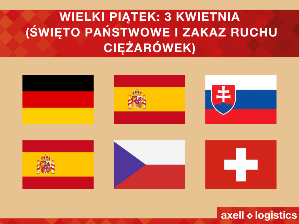 W Axell Logistics wierzymy, że terminowe i rzetelne informacje pomagają firmom przygotować działania logistyczne z większą pewnością. Poniżej znajdziesz przejrzysty przegląd najważniejszych ograniczeń w ruchu ciężarówek w okresie Wielkanocy, który pomoże Ci przewidzieć potencjalne zakłócenia i odpowiednio zaplanować transport.